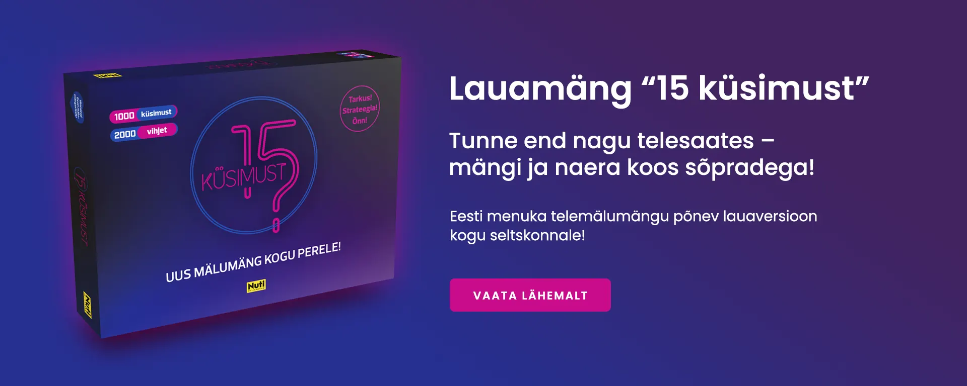 Uus lauamäng „15 küsimust“ toob Eesti menukaima telemälumängu põnevuse otse sinu koju. Kogu pere või sõbrad kokku, vali vihjed, kasuta...